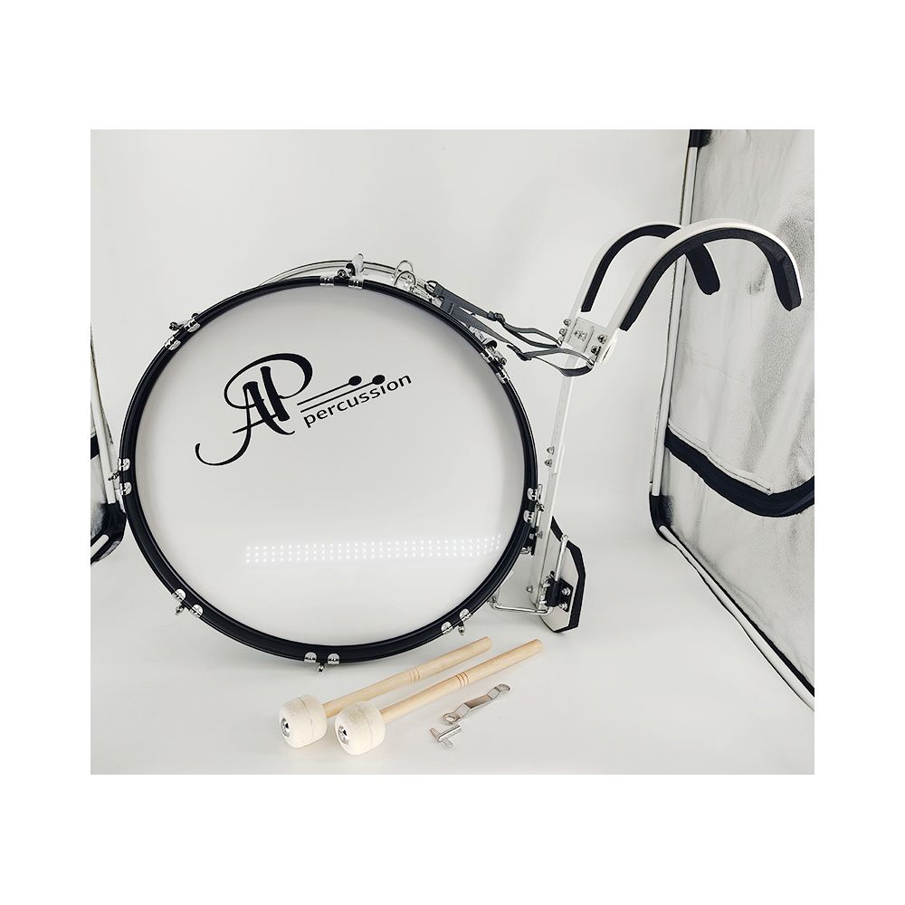 AP Percussion MB-2212 Барабан маршевый большой 22"х12" белый, черная фурнитура с держателем, колотушки