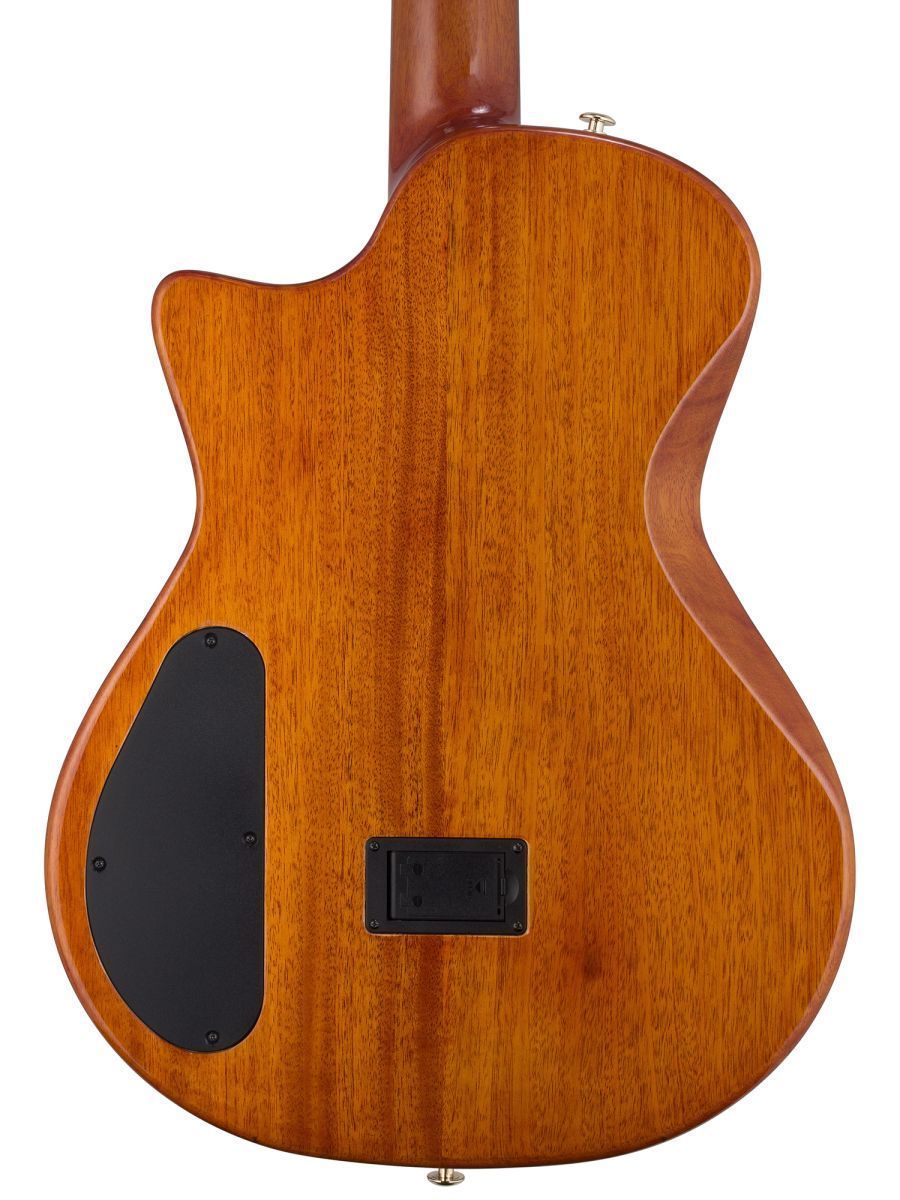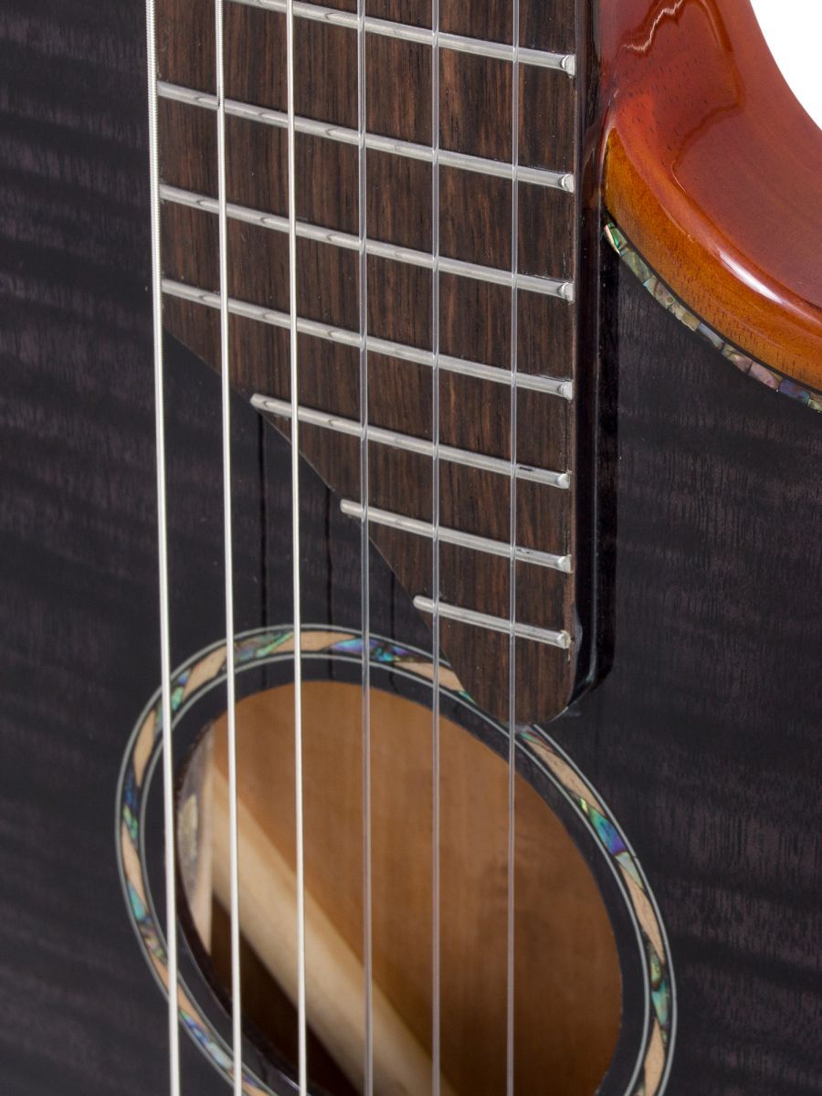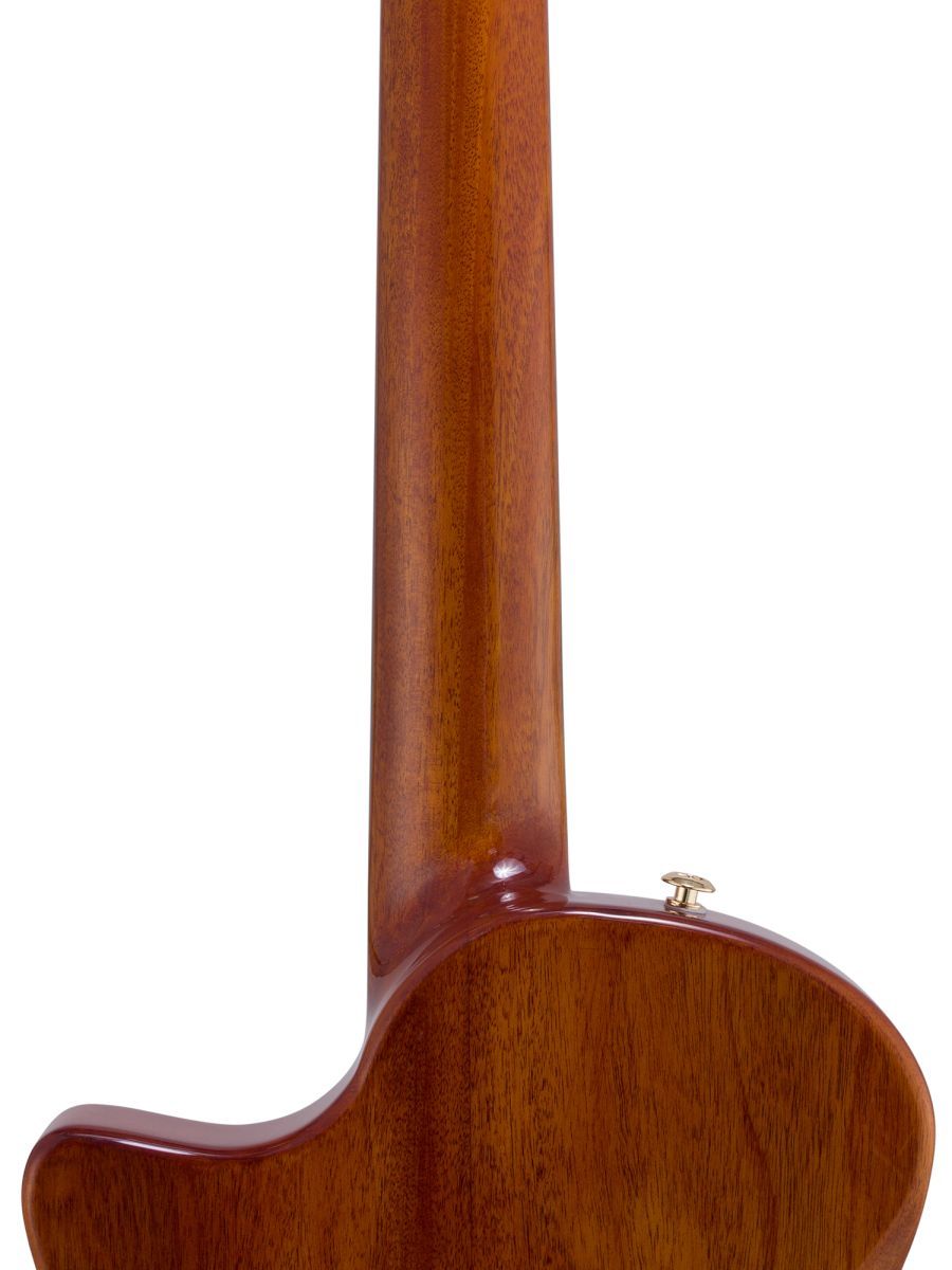 Серия: Fusion Craft Форма корпуса: Hollow Body with Cutaway Мензура: 650 мм (25 19/32”) Ширина грифа на нулевом ладу: 48 мм (1 57/64”) Ширина порожка: 45 мм (1 49/64") Корпус: махагони Верхняя дека: ель с шпоном из огненного окуме класса 5A Гриф / накладка грифа: махагони / макассарский эбен Анкерный стержень: двухсторонний Лого на голове: гора Бромо, перламутр Оформление резонаторного отверстия: «Ковбойская веревка» Бридж: "Орлиное крыло", черное дерево Amara Лады: 22 Верхний и нижний порожки: кость Колки: винтажные "Mt. Bromo", позолоченные Электроника: пьезодатчик + 3-позиционный звукосниматель под струнодержателем Отделка: глянцевый лак Цвет: Trans Black В комплекте: утепленный жесткий кейс