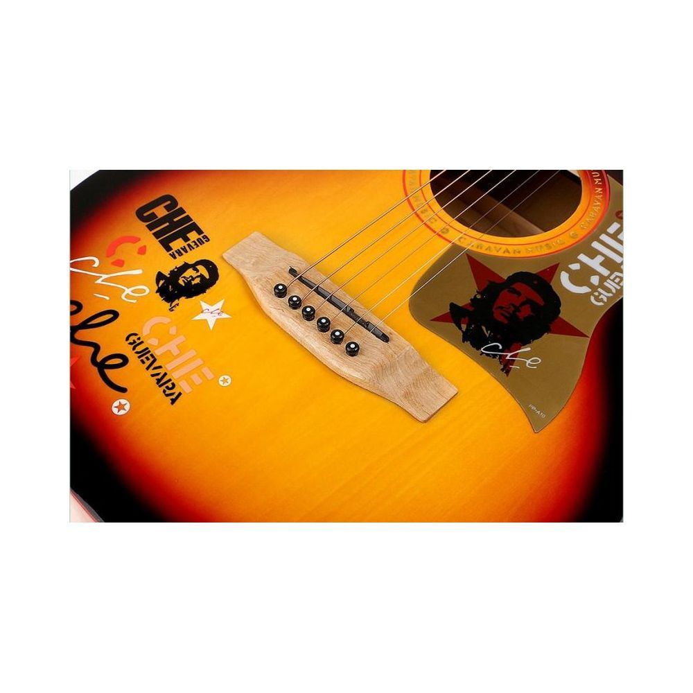 Caravan HS-4015 3TS – это качественная акустическая гитара с вырезом, выполненная в оригинальном дизайне. Модель обладает достойными звуковыми характеристиками. Caravan – это недорогие акустические гитары с качественным звучанием. За все время существования бренд Caravan заработал себе безупречную репутацию и прочно укрепился в нише акустических гитар. Верхняя дека гитары выполнена из липы, которая обеспечивает ровный и яркий звук. Гриф изготовлен из махагони. Вырез обеспечивает удобный доступ к верхним ладам. Главная особенность гитары – изображение Че Гевары на верхней деке. Акустическая гитара Caravan HS-4015 3TS станет прекрасным вариантом для музыкантов, которые хотят подчеркнуть свою индивидуальность.