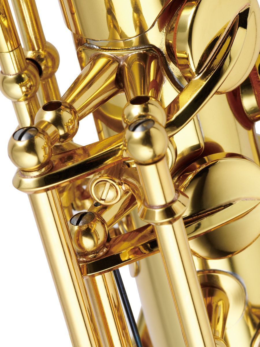 Идеальный баритон-саксофон для ансамбля или оркестра, JBS1000 обладает всеми необходимыми функциями. Клапан нижней A, наклонная клавиша-лопаточка Bb и легендарный тон Jupiter входят в стандартную комплектацию. Корпус из латуни с золотым лаком обеспечивает максимально точный диапазон и удобство игры, а покрытие золотым лаком гарантирует долговечность и красоту. Клавиши из латуни с золотым лаком изготовлены из закаленной латуни высочайшего качества, а затем покрыты глянцевым золотым лаком для долговечности. Регулируемая высота клавиш позволяет руке любого размера удобно разместиться на инструменте.