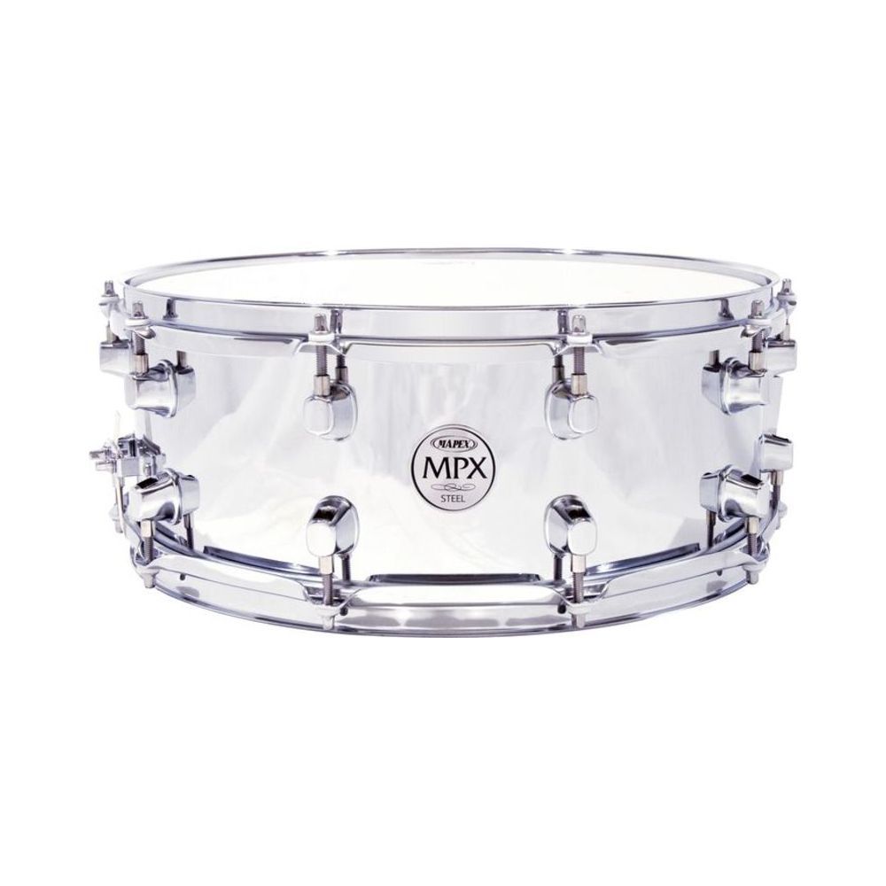 Серия: MPX Steel Размер: 14" х 5.5" Корпус: нержавеющая сталь, 1 мм Ободы: хром Лаги: 20 лёгких лагов Пластик: Remo® UX Страна-производитель: Тайвань (Китай)