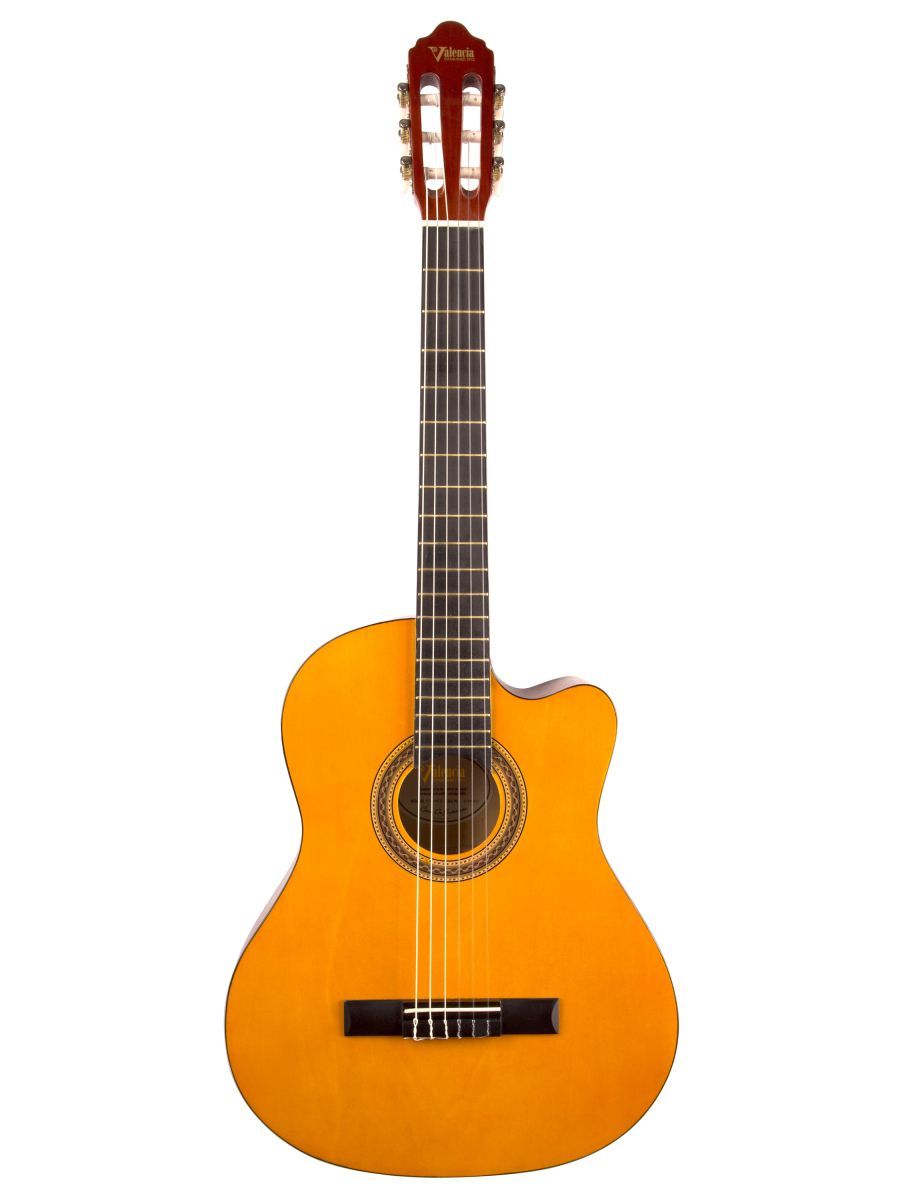 Valencia VC104C – это качественная полноразмерная классическая гитара с вырезом. Инструмент имеет универсальный характер звучания, поэтому подходит для различных музыкальных жанров и стилей игры. Корпус гитары изготовлен из липы, которая обладает усиленными резонансными особенностями. Гриф из нато имеет удобную форму и оптимальную ширину. Накладка выполнена из клена. Вырез эргономичной формы дает удобный доступ к верхним ладам. Натуральное покрытие Valencia VC104C положительно влияет не только на внешний вид инструмента, но и на его звуковые характеристики. Надежная колковая механика прекрасно держит строй и обеспечивает легкость при настройке. Нейлоновые струны, установленные на комфортной для игры высоте, придают звучанию особую мягкость. Стильная, удобная и доступная по цене гитара Valencia VC104C – идеальный вариант для начинающих музыкантов.